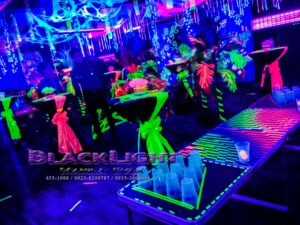 We cater different kind of blacklight setups from corporate and birthday parties, school events, shoots, projects and others. Our service spans nationwide. Though our events are mainly from Metro Manila, we also have clients from Central Luzon, Visayas and up to Davao.