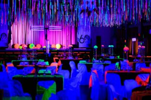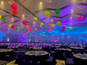 With our professional team of ceiling drapes installers, together with decors all around your venue; you and your guests will be indulge with mesmerizing UV effects. Guaranteed for client satisfaction indeed!